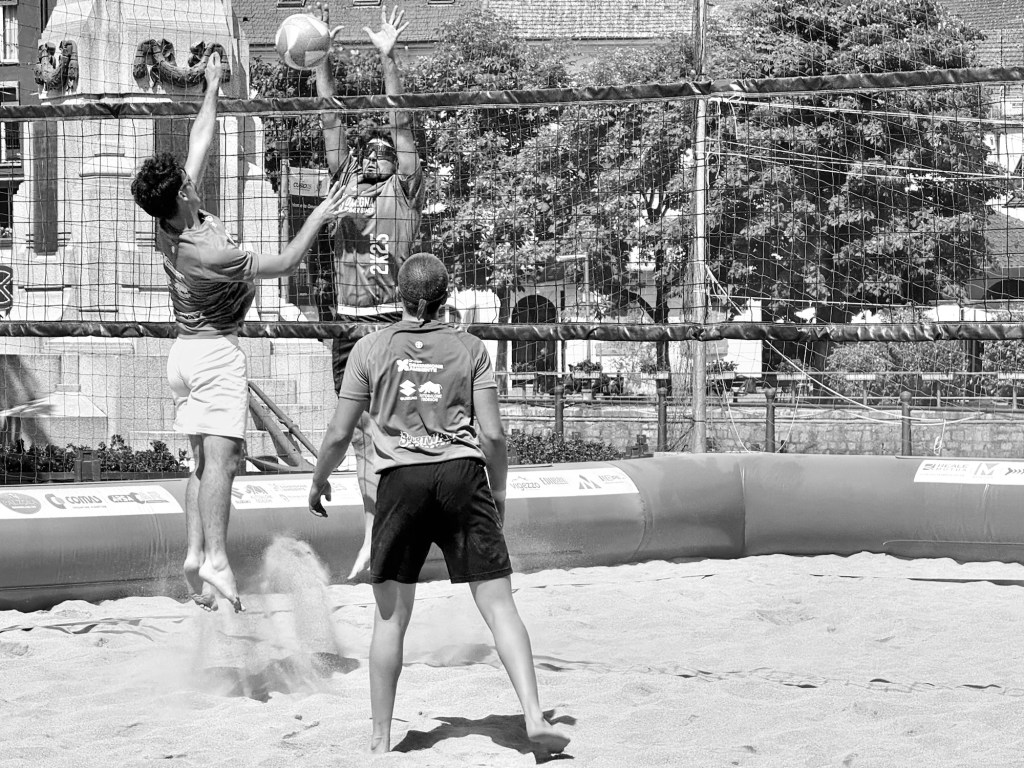 Quell’attimo di sospensione dove anche la sabbia sollevata è ferma. Così come la palla e i due contendenti. Un momento di immobilità prima del verdetto.